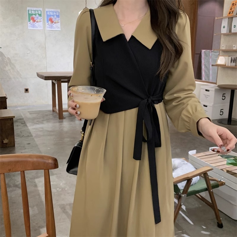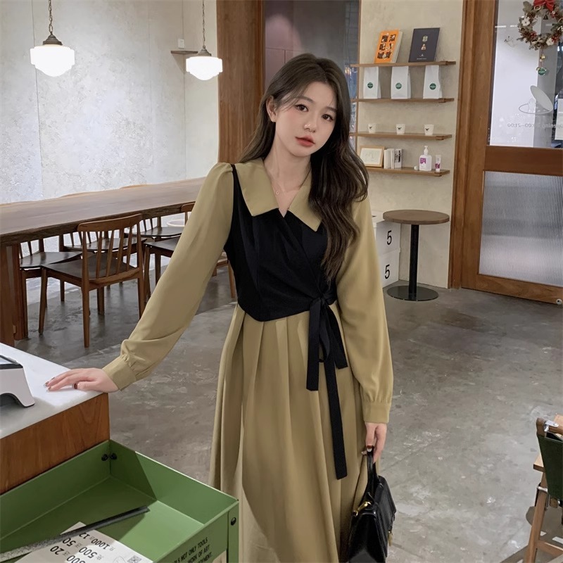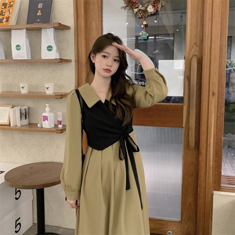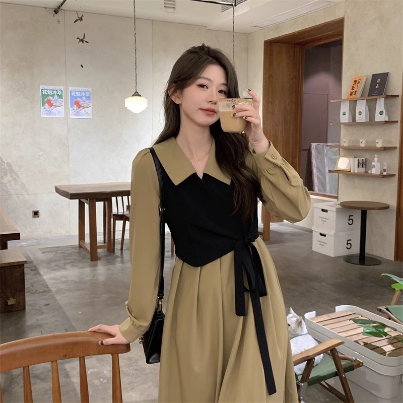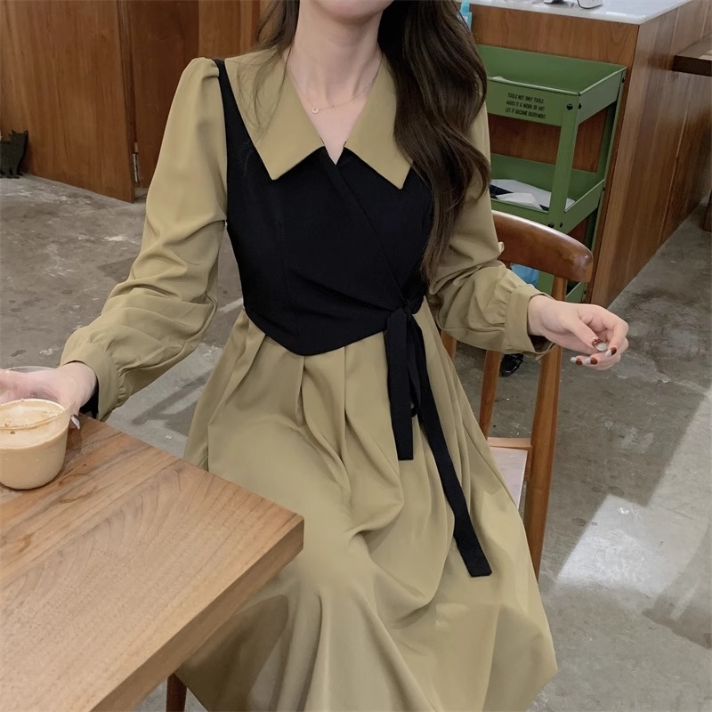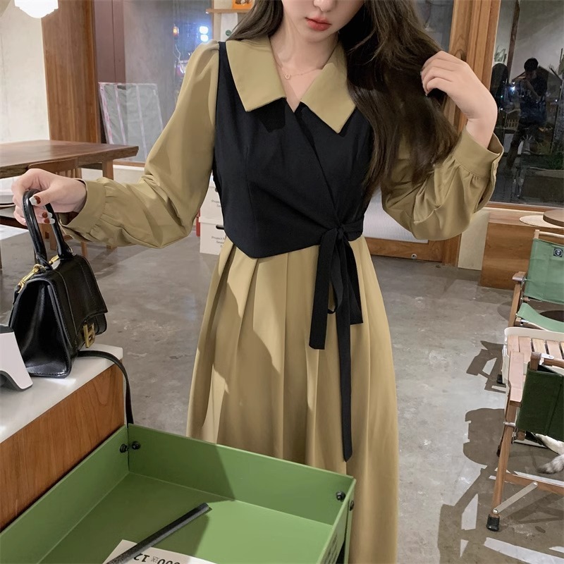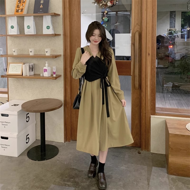 - 复古海边度假风格子连衣裙简约气质背心裙