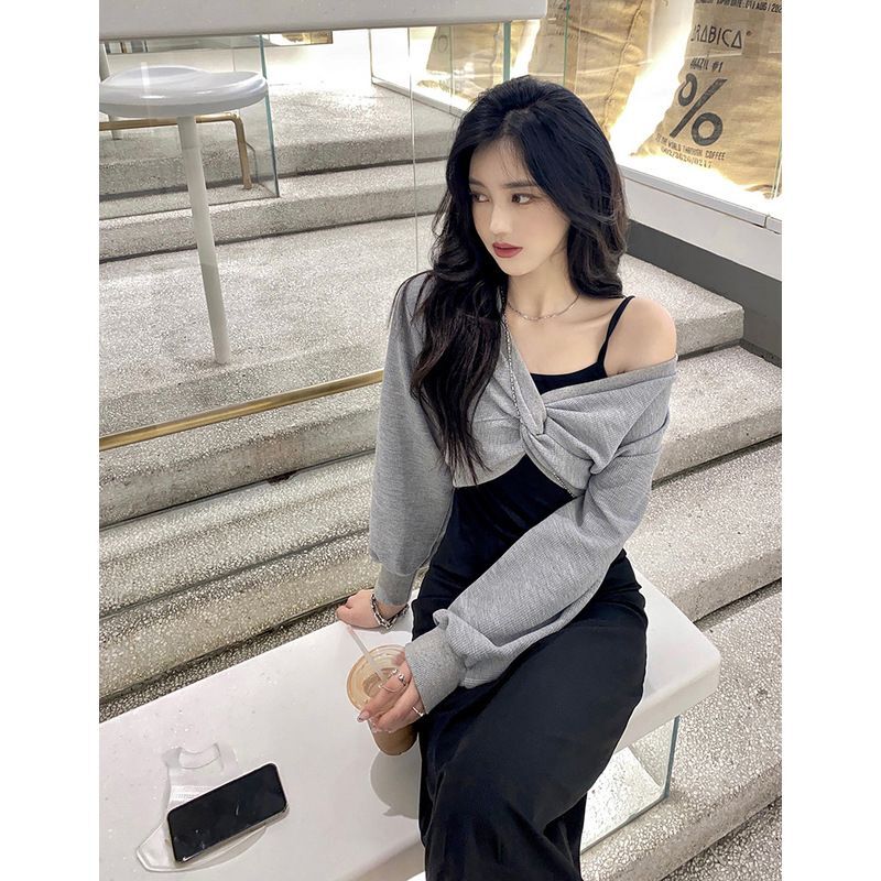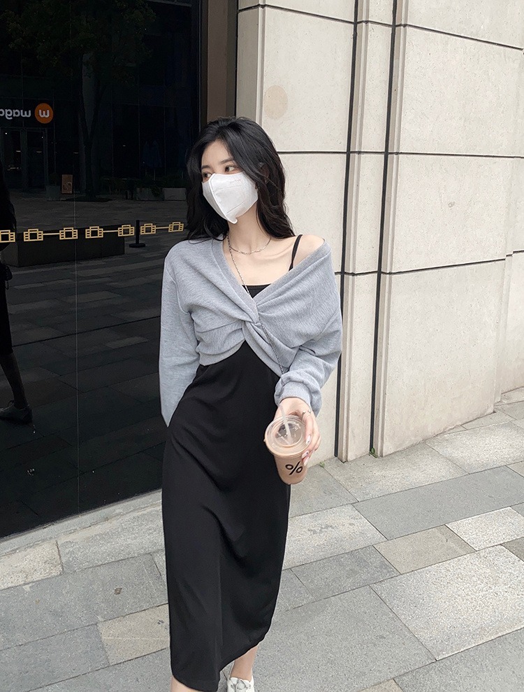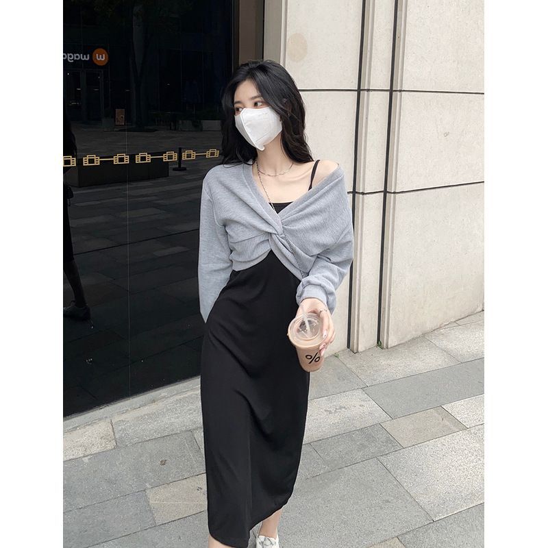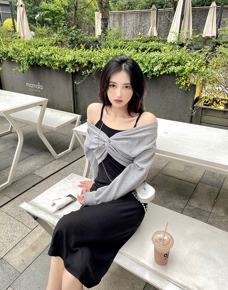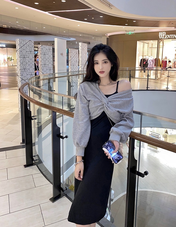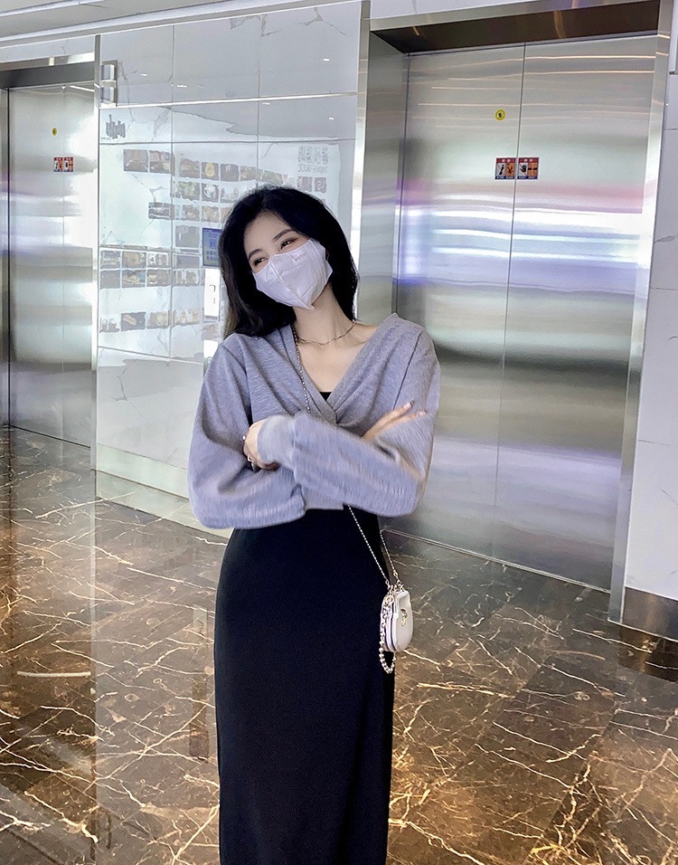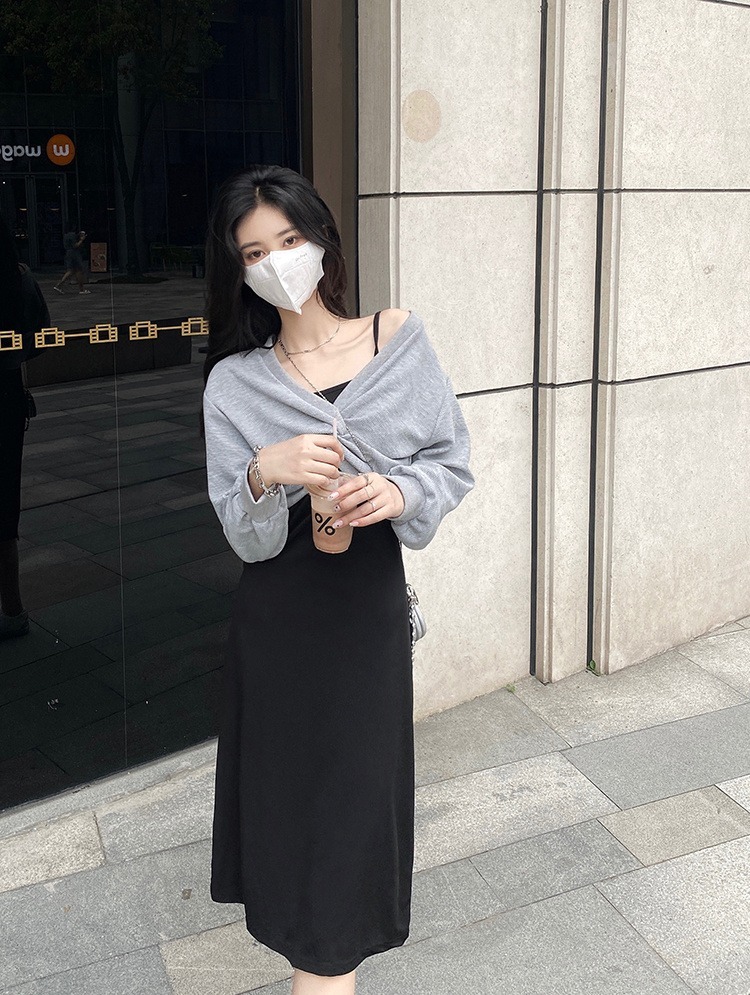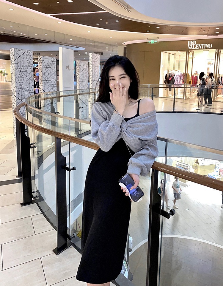 - 法式印花网纱紫色吊带连衣裙女夏季修身显瘦包臀短裙