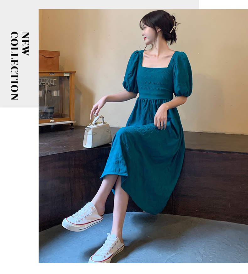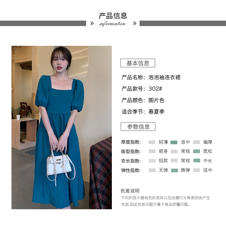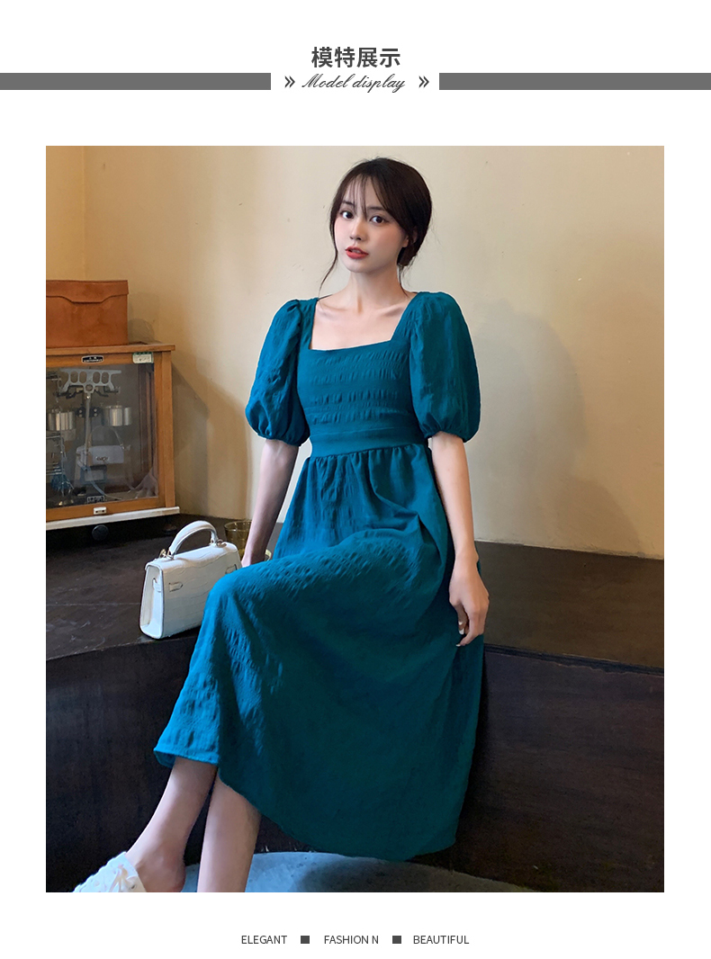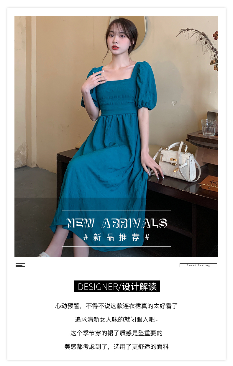 • #302实拍实价(有拉链)夏季法式方领泡泡袖连衣裙女装初恋露