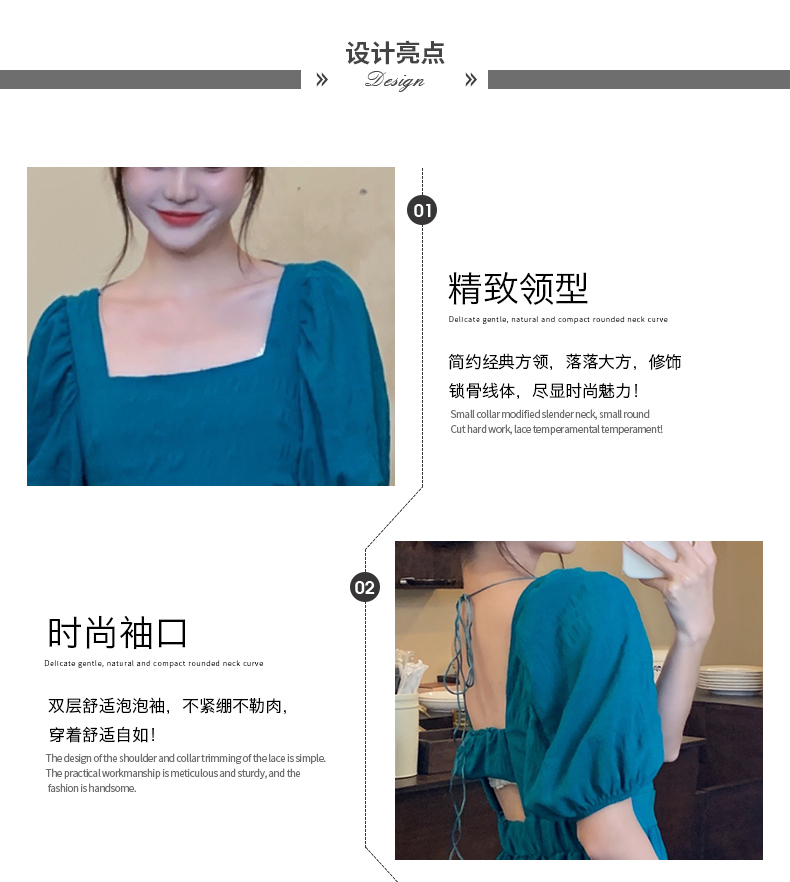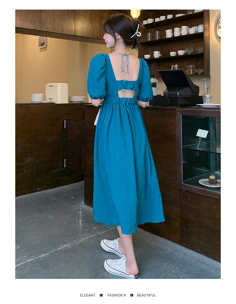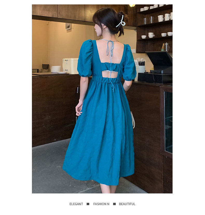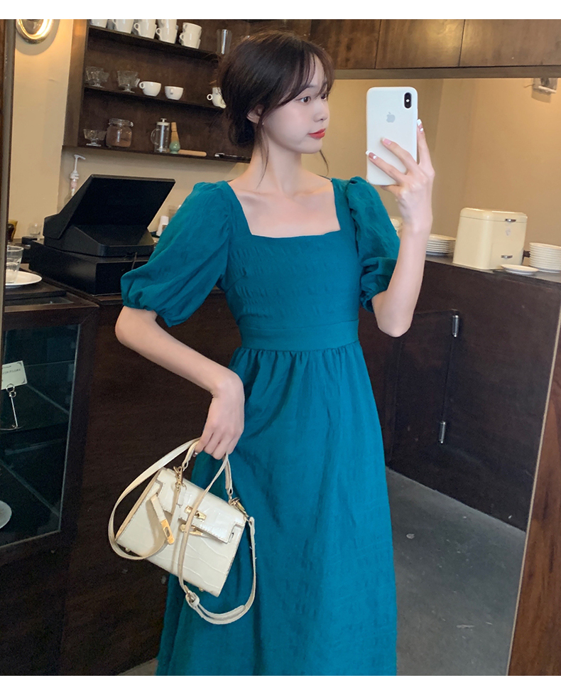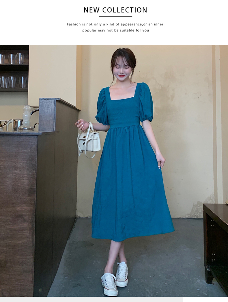 • #302实拍实价(有拉链)夏季法式方领泡泡袖连衣裙女装初恋露