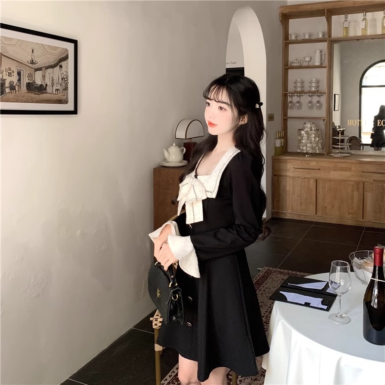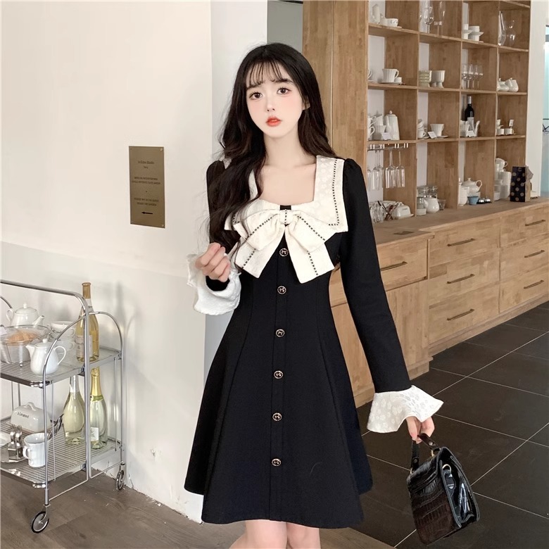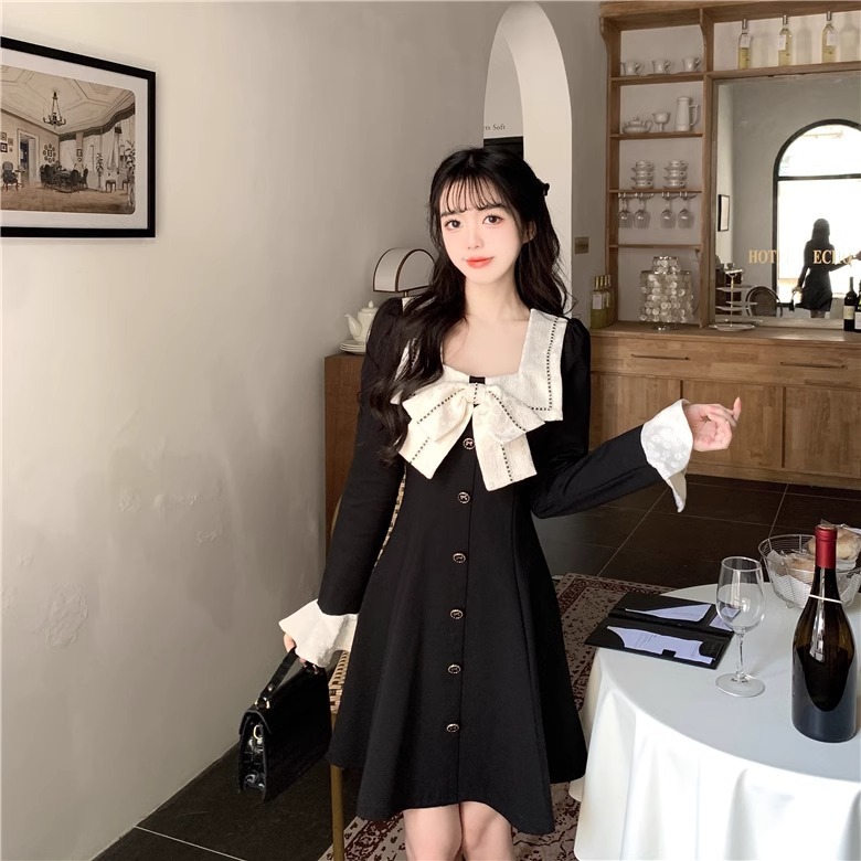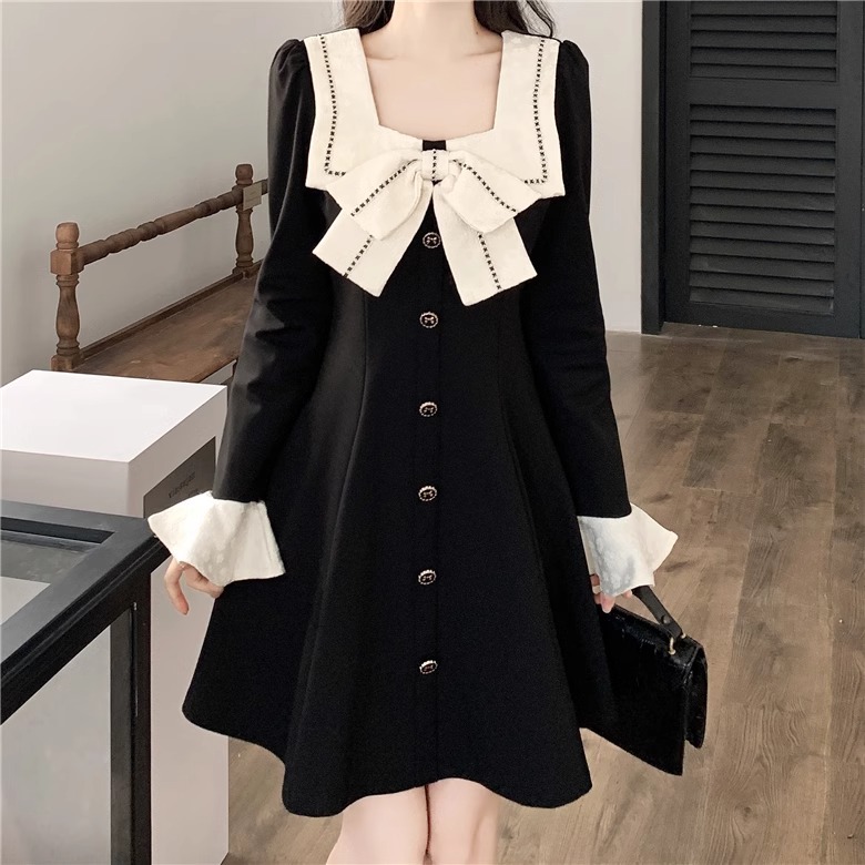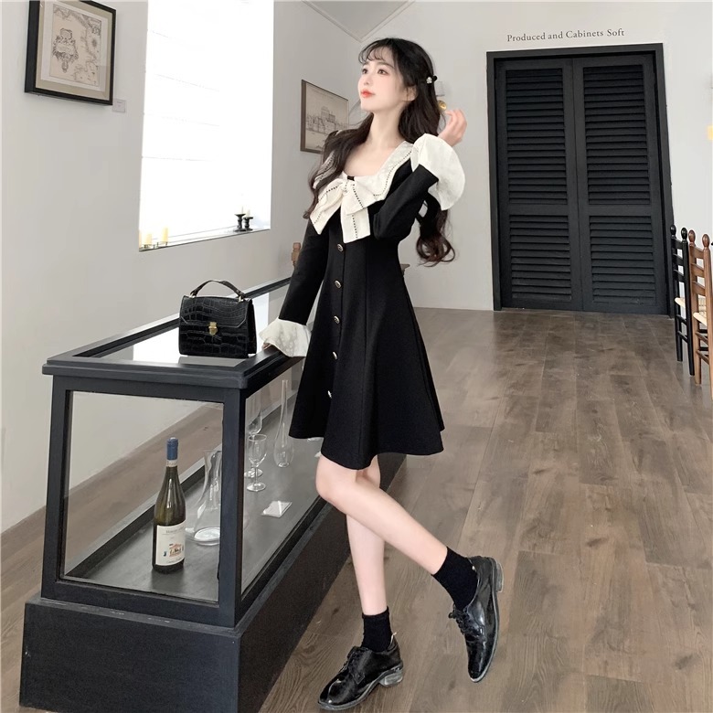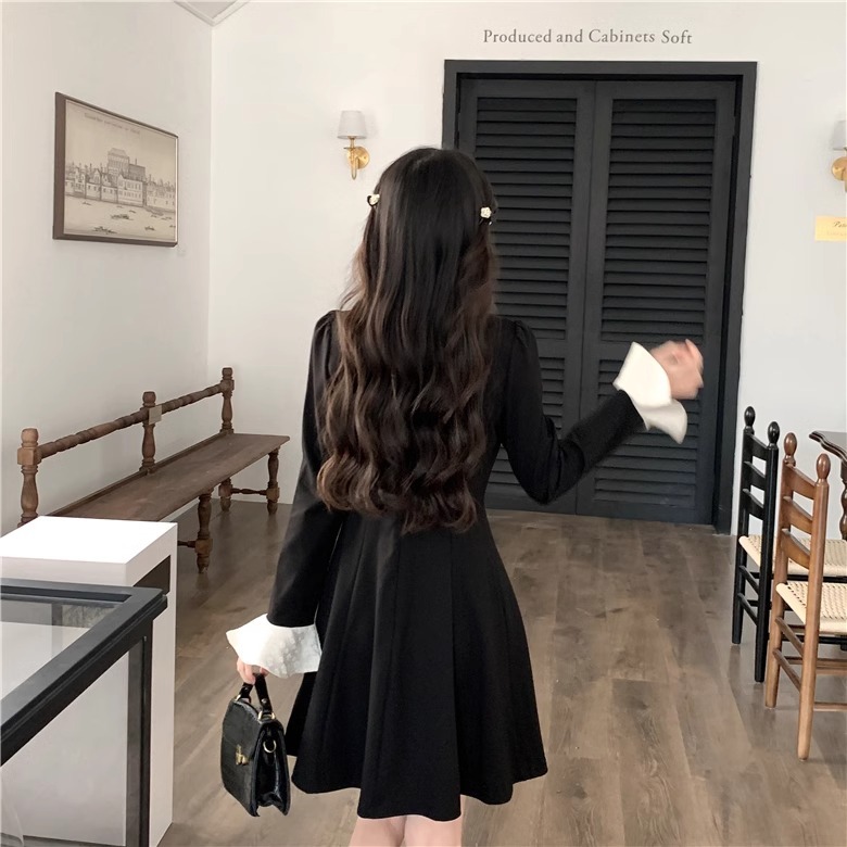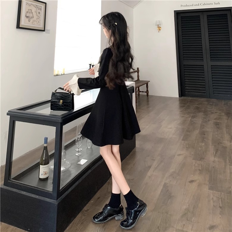- 夏季韩版女装收腰显瘦性感方领泡泡袖气质ins裙子