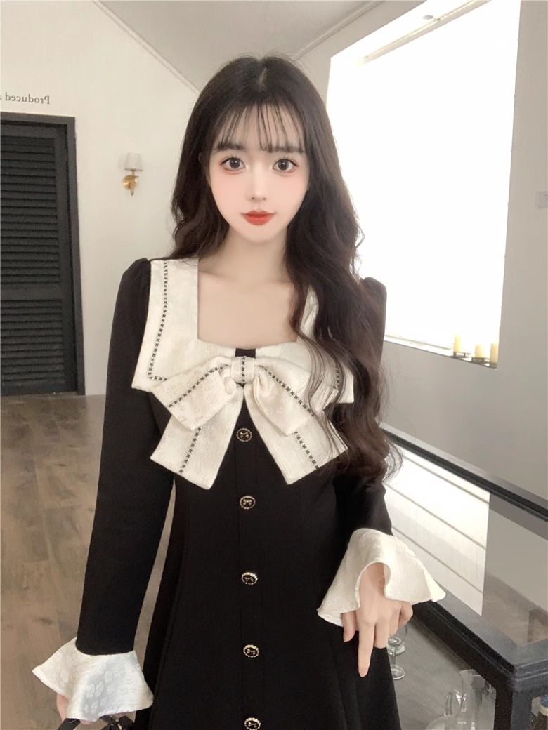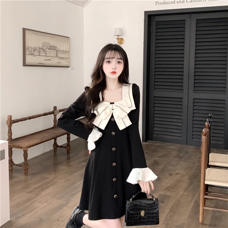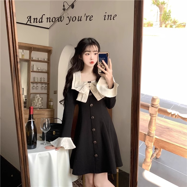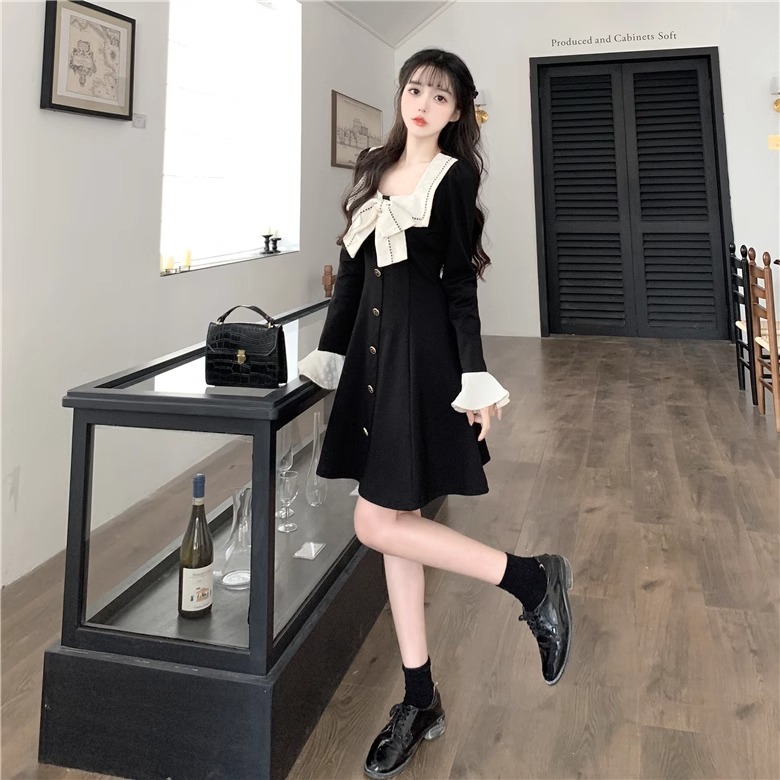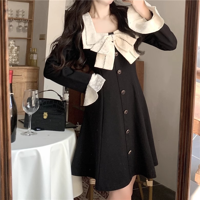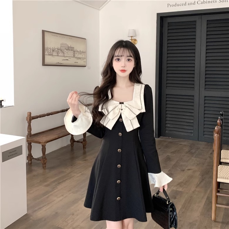 - 夏季韩版女装收腰显瘦性感方领泡泡袖气质ins裙子