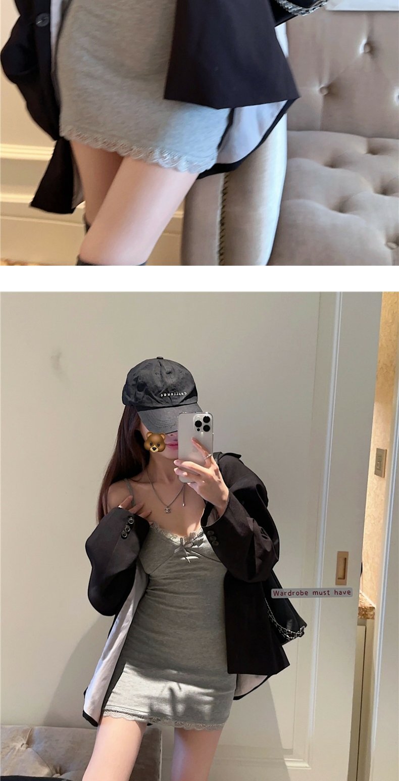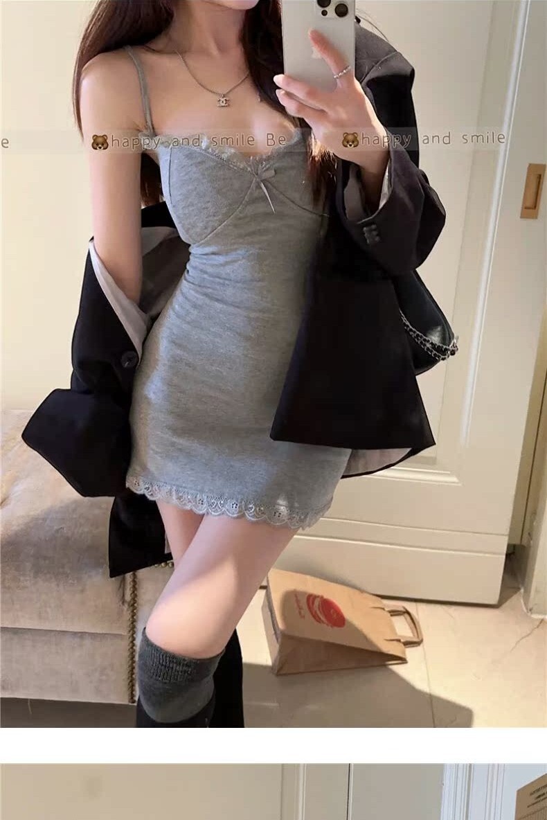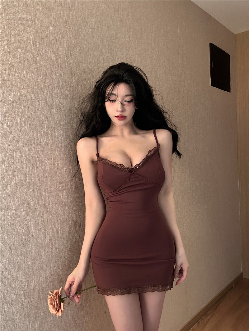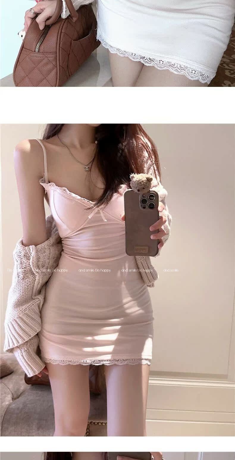 • 【自带胸垫】蕾丝吊带连衣裙女时髦小姨风性感紧身内搭短裙包臀裙