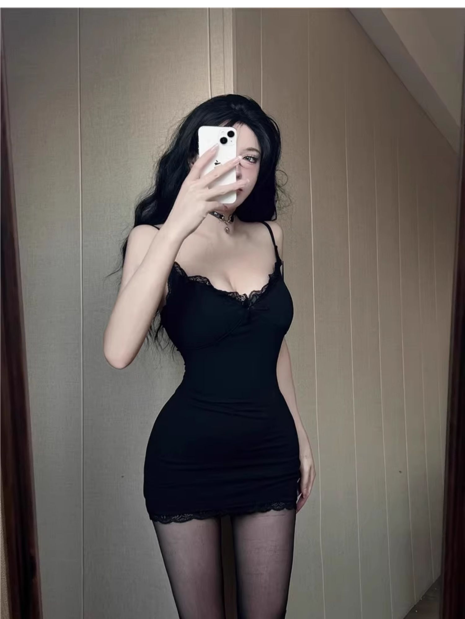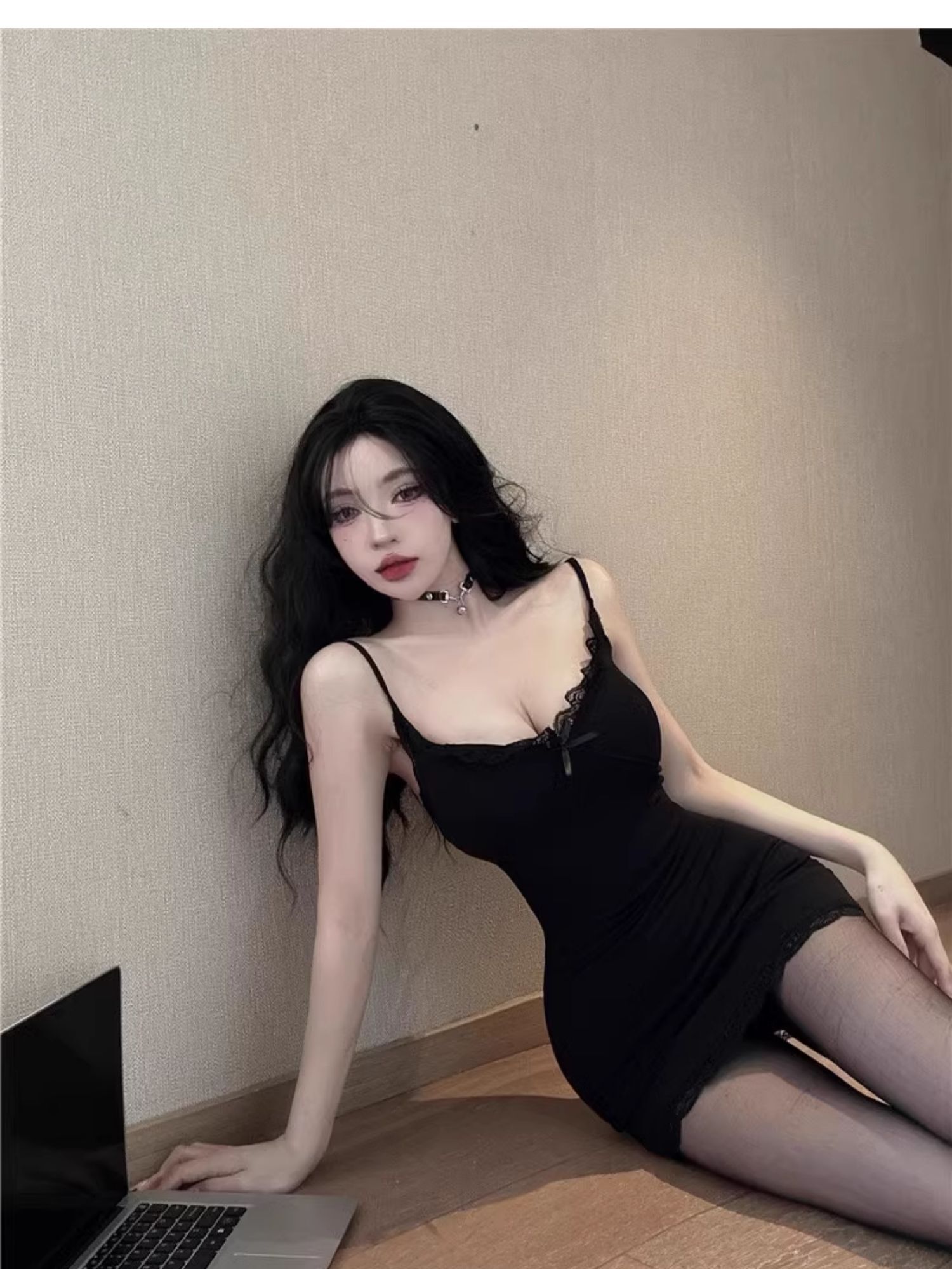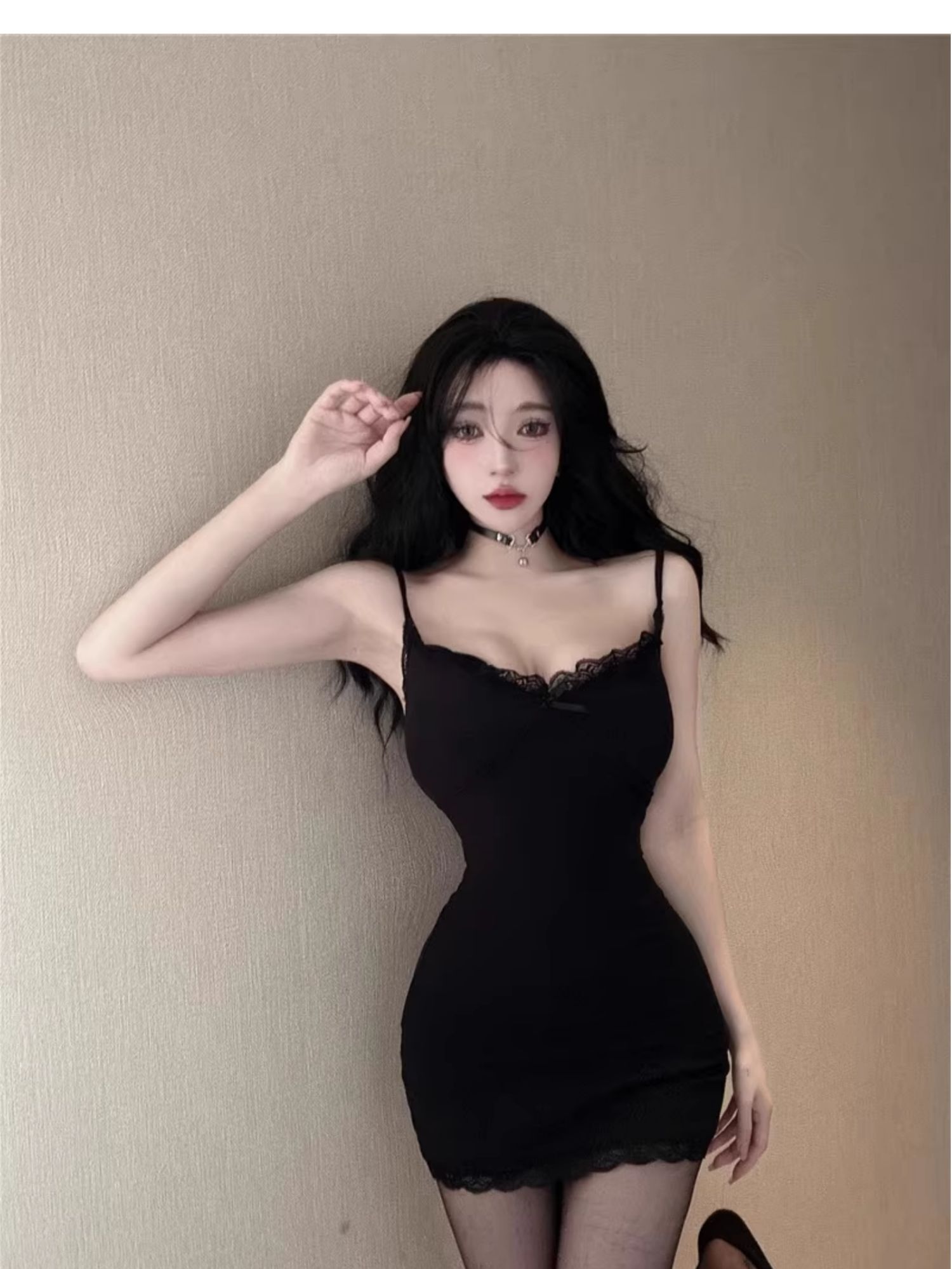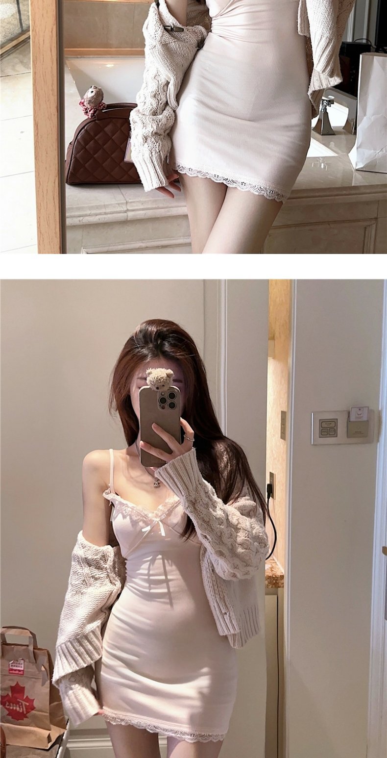 • 【自带胸垫】蕾丝吊带连衣裙女时髦小姨风性感紧身内搭短裙包臀裙