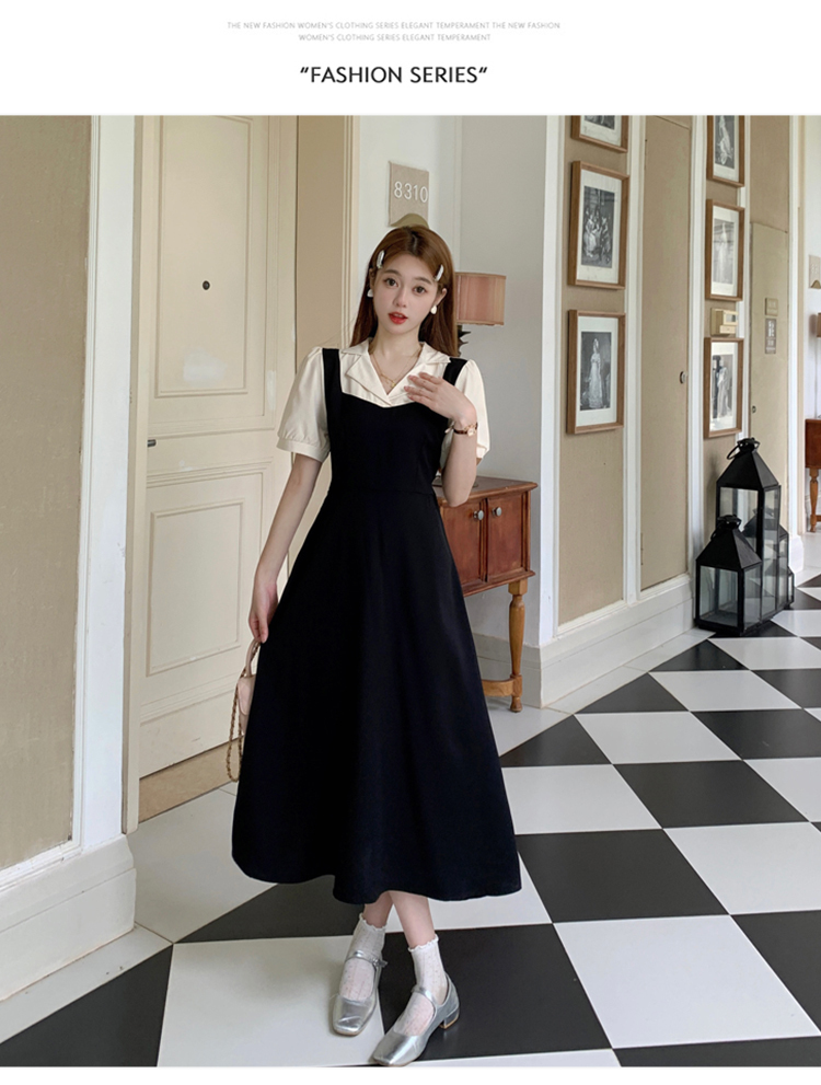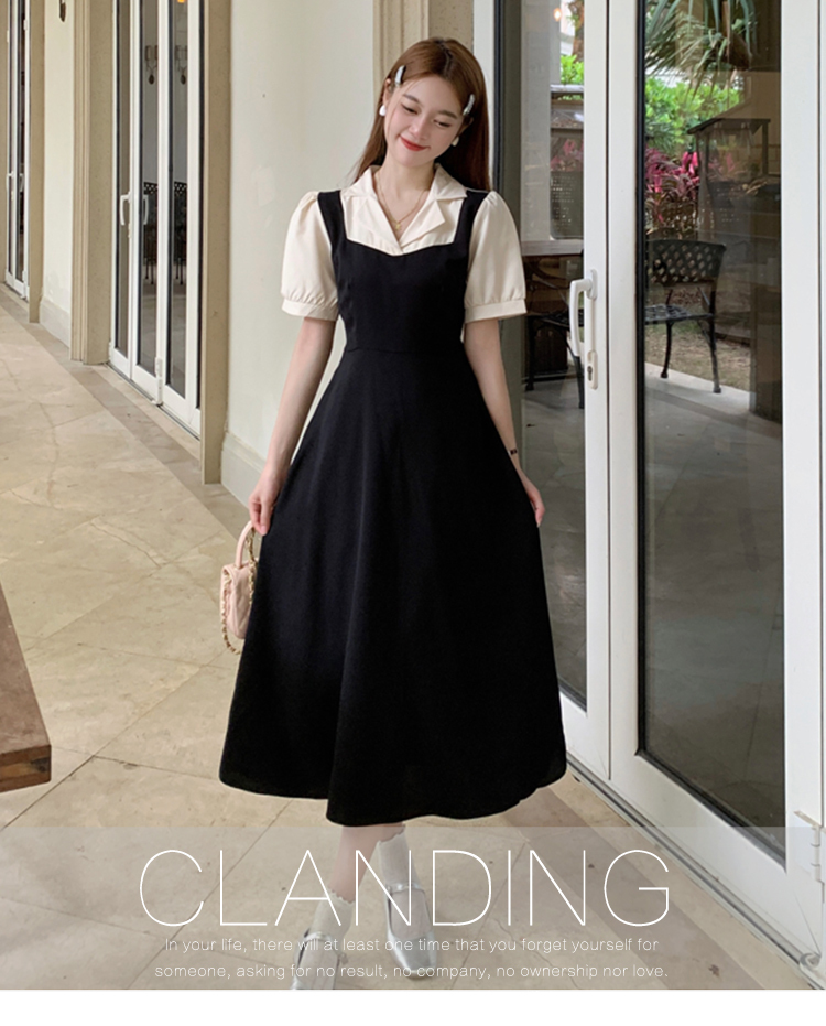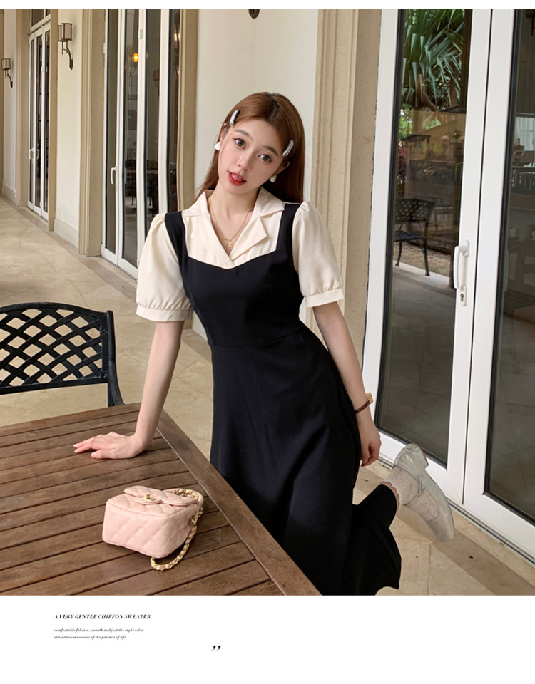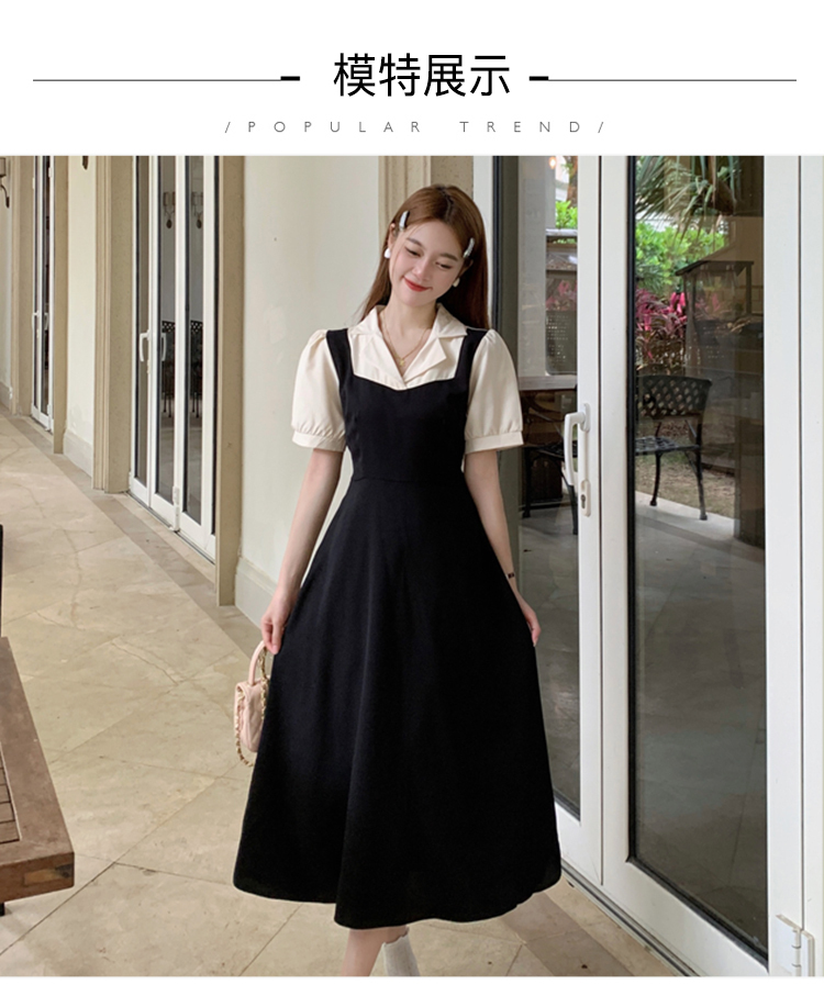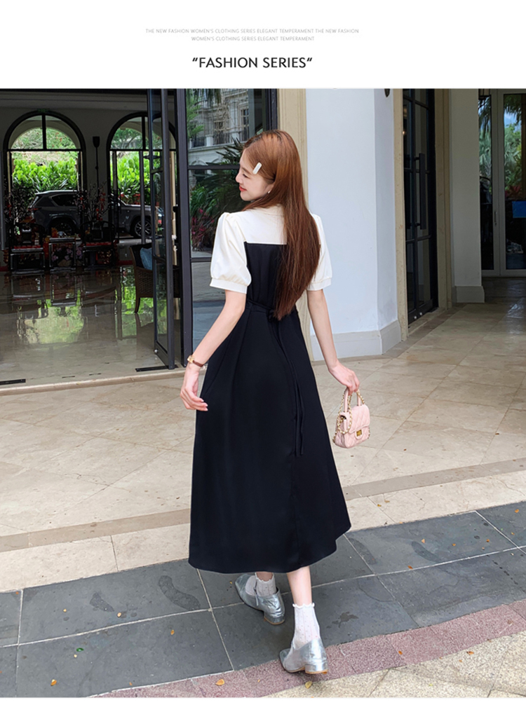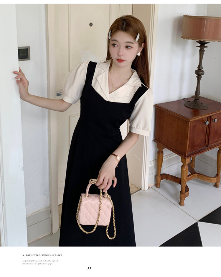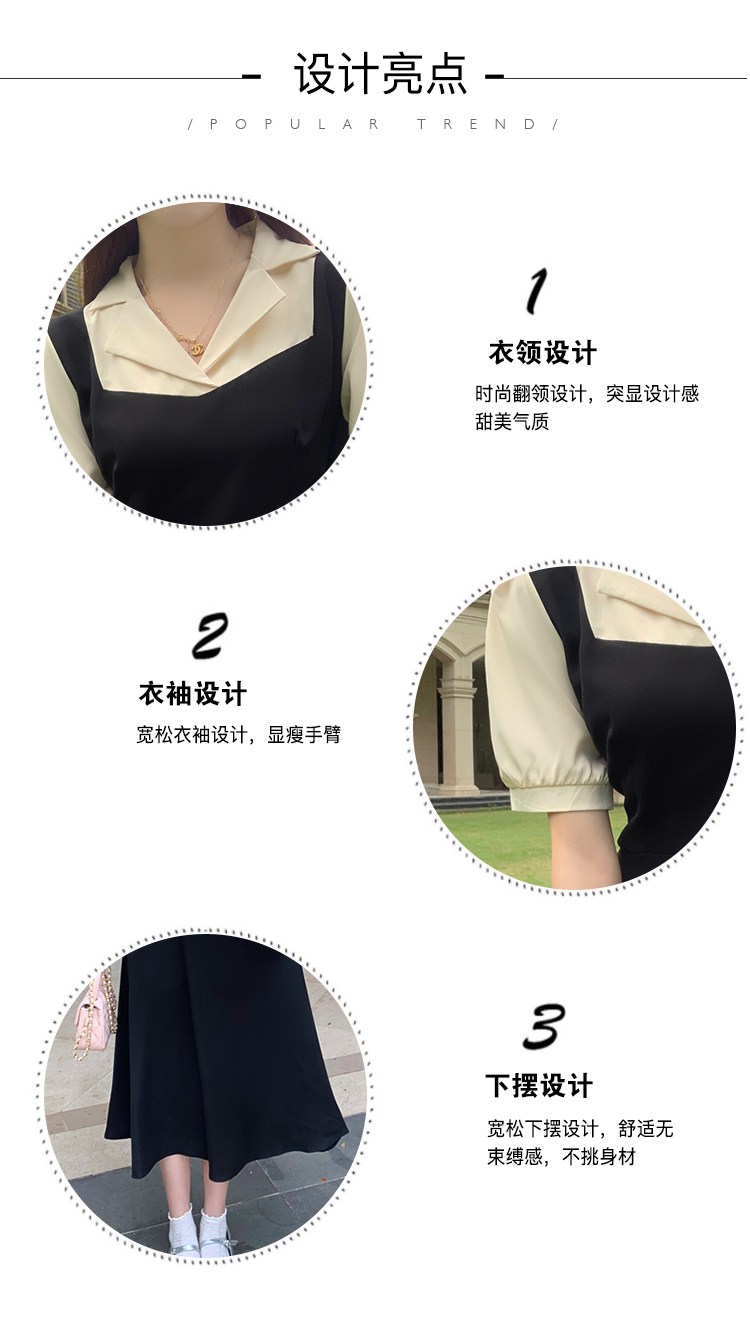 • #825【后包领做工】实拍实价新款撞色拼接假两件收腰系带A字