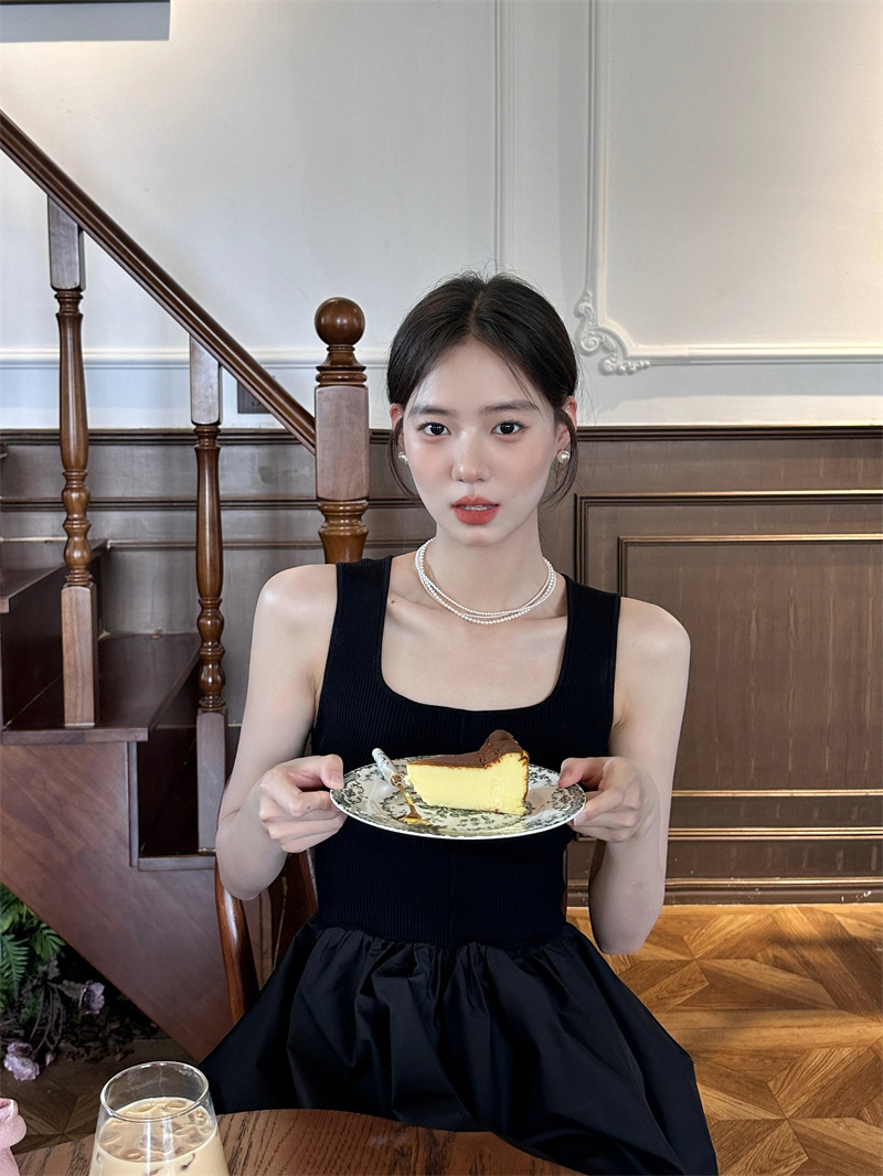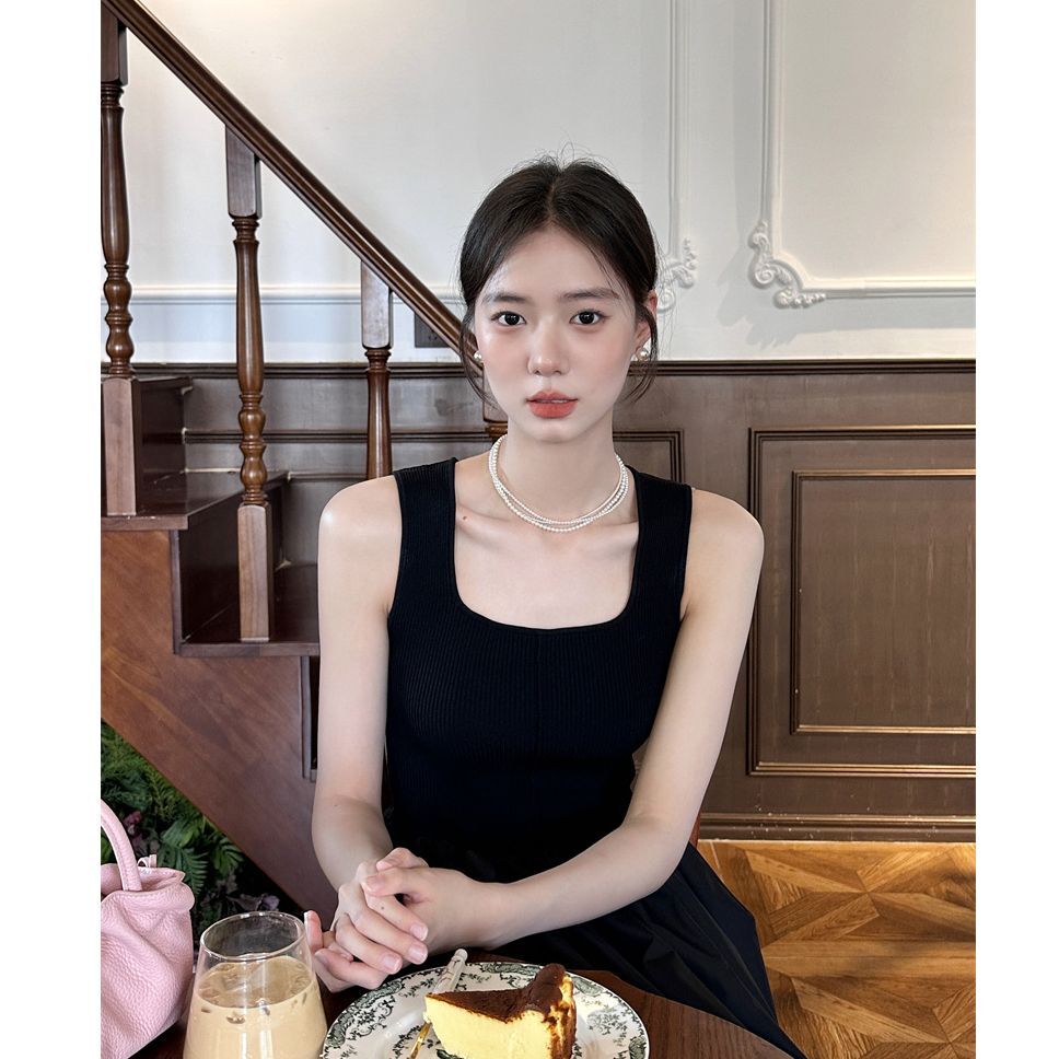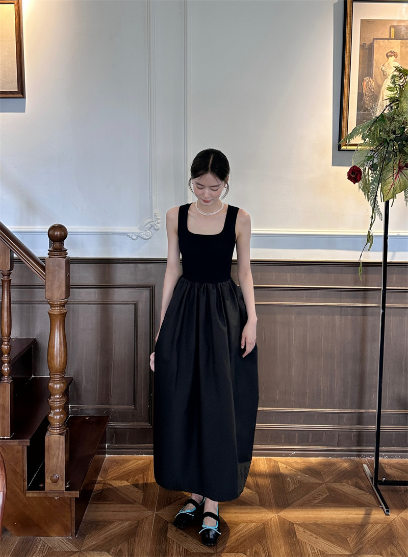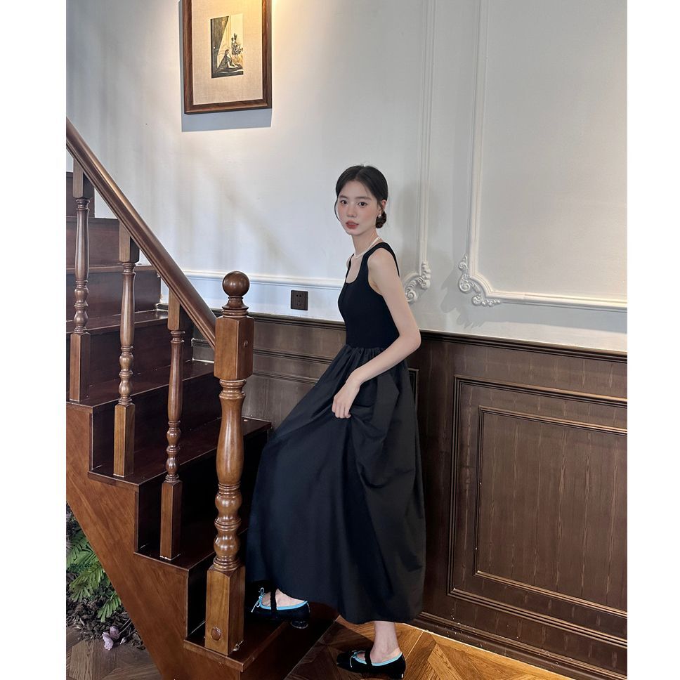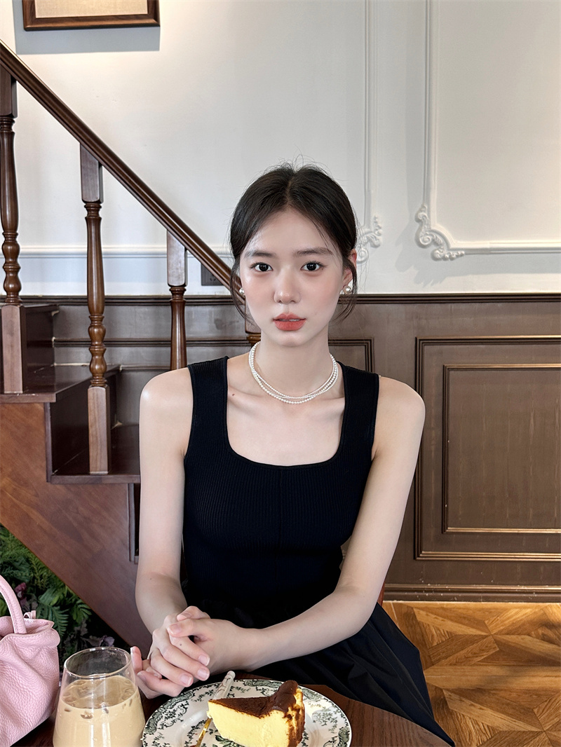 - 复古海边度假风格子连衣裙简约气质背心裙