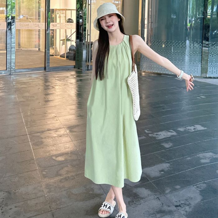 • 绿色无袖背心连衣裙子女夏季2025新款海边度假法式气质高级感