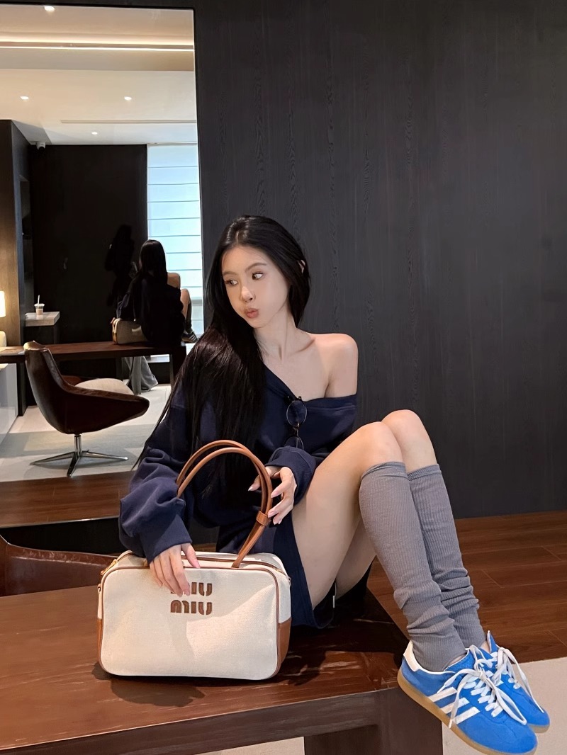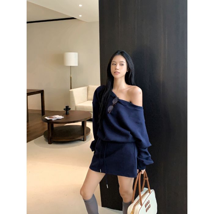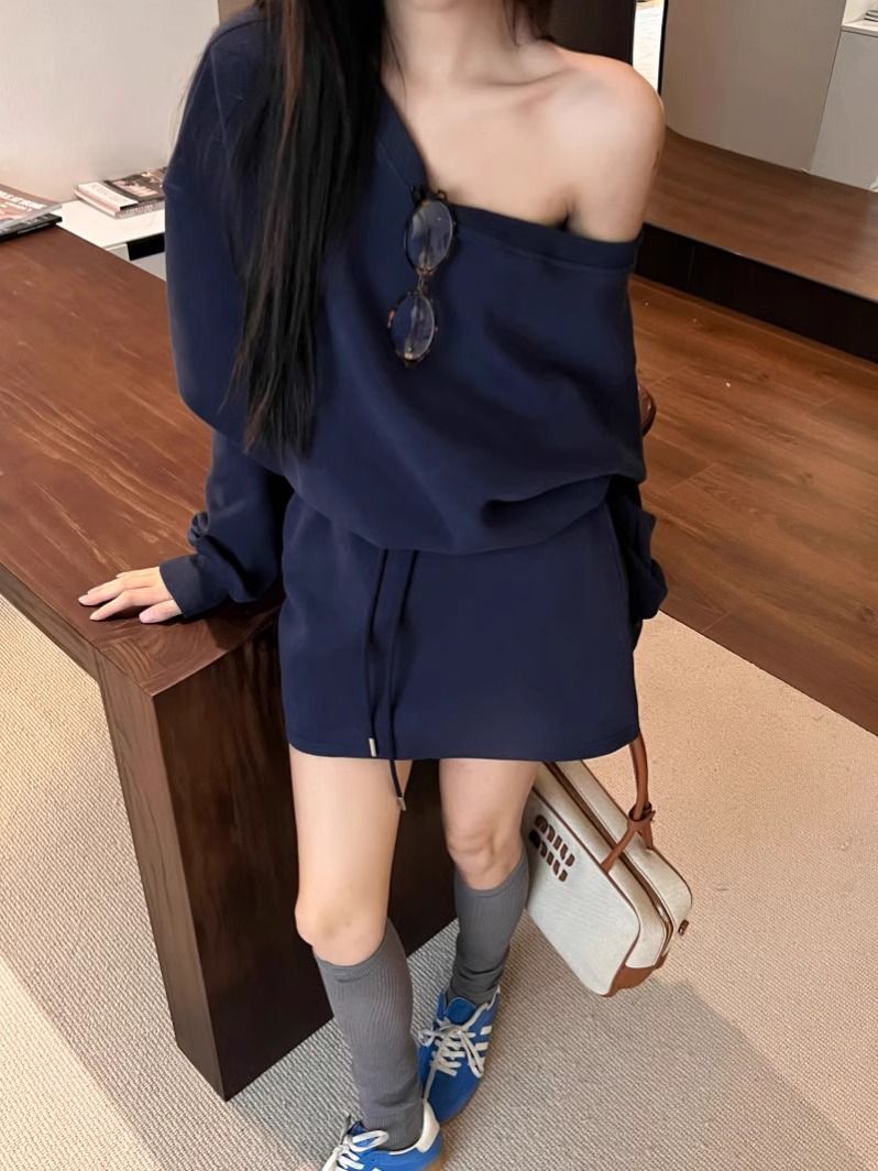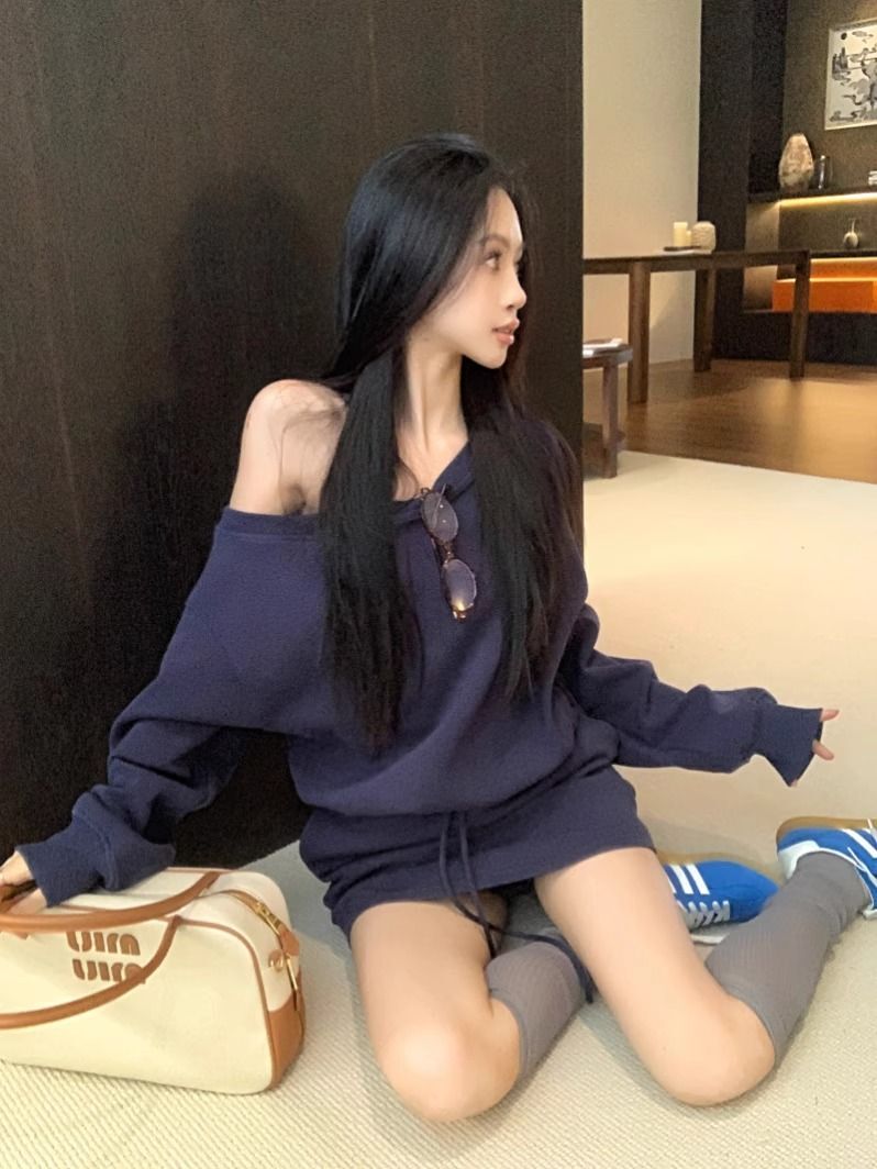 • 露思同款美式斜肩卫衣女秋季2024新款松弛感慵懒宽松露肩长袖